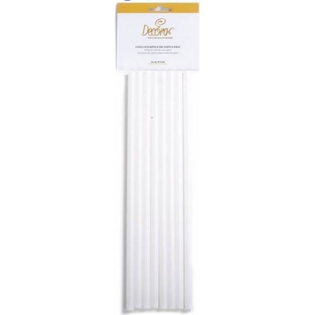 Plastové tyče vyrobené z polypropylenu bezpečného pro potraviny, ideální pro výrobu patrových dortů. K dispozici ve třech různých velikostech pro dorty různých velikostí. Umývejte je ručně. Lze je používat opakovaně. Chcete-li, aby i více patrový dort pevně držel, pak jsou tyto plastové tyče vhodnou volbou. Jsou vyrobeny z omyvatelného a především zdravotně nezávadného materiálu. Lze je použít nejen na dorty, ale i další skládané dezerty a moučníky. Vhodné pro použití v běžné domácnosti i profesionální cukrárně. V balení 8 ks.