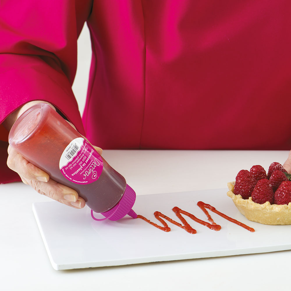 Plastový dávkovač s plastovým uzávěrem je ideální pro rozpuštěnou čokoládu. Vhodný do mikrovlnné trouby. Díky praktickému uzávěru máte čokoládu či krém uchovány bezpečně a hygienicky, navíc kdykoliv k dispozici. Objem 250 ml.