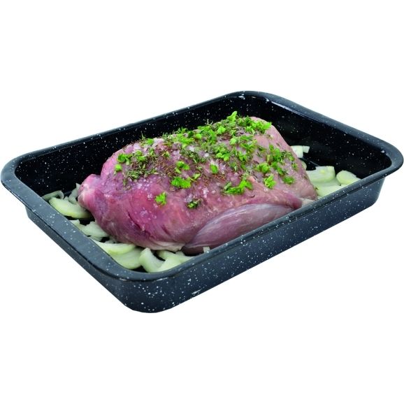 Plech smaltovaný hluboký. Využijete ho k pečení masa i moučníků. Rozměry: vnitřní 37x30x4,5 cm, vnější 40x34x4,5 cm.
