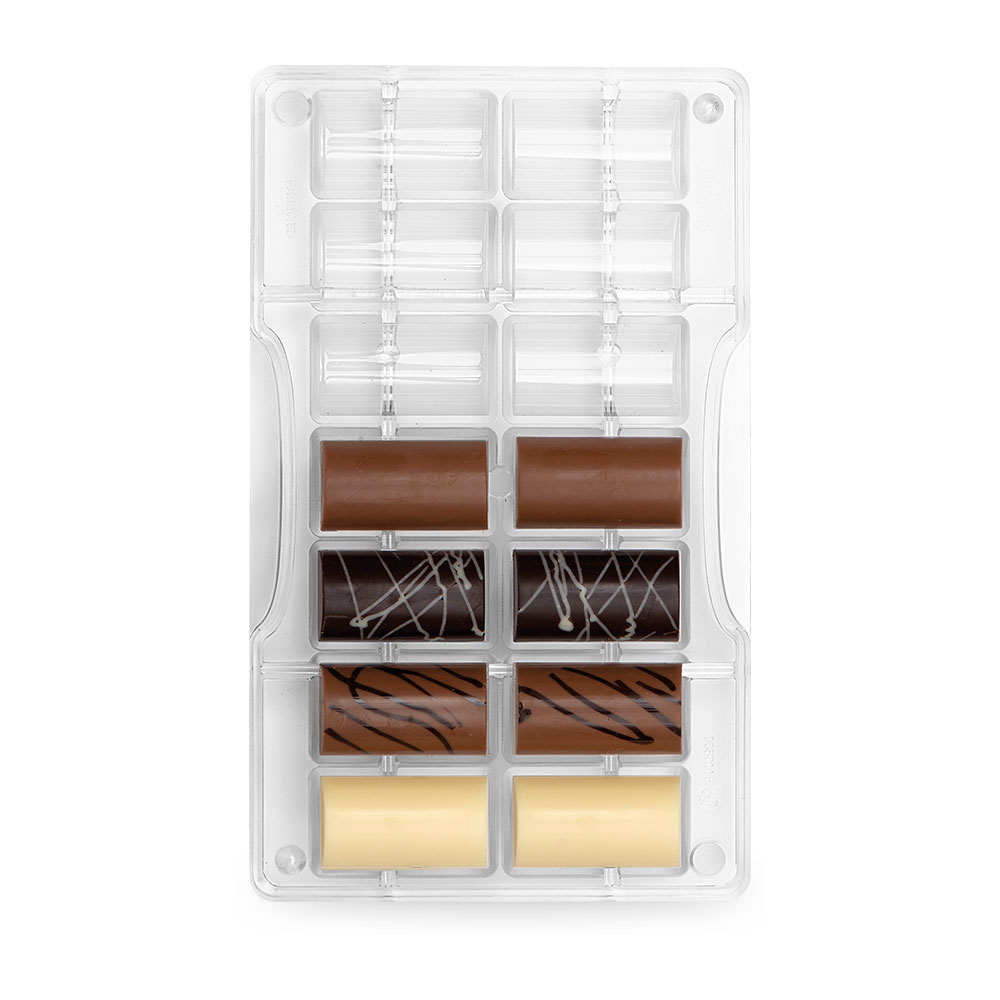 Profesionální čokoládová forma z polykarbonátu od Decora. Skvělý tvar pro lití válců. V našem sortimentu jsou 3 různé velikosti válců.
