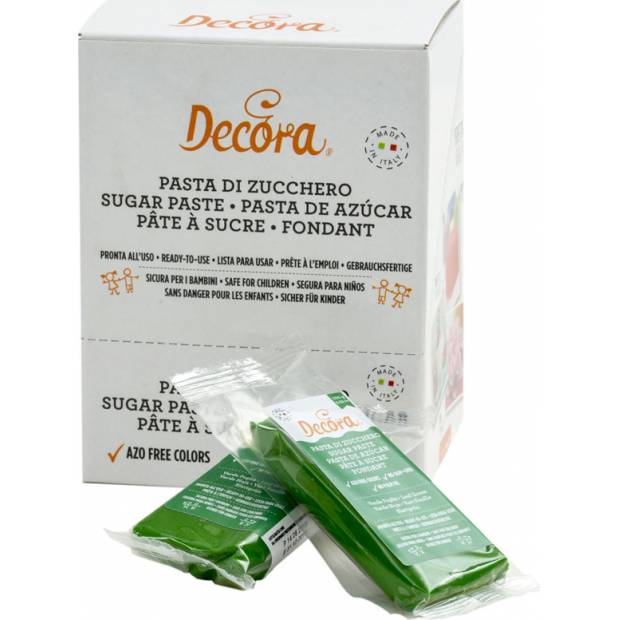 Zelená modelovací cukrová pasta s příchutí vanilky balená ve vakuových sáčcích. Cukrová pasta má perfektní tvárnost a pružnost danou kakaovým máslem, je ideální pro pokrývání dortů, pro vytváření květin a 3D předmětů, můžete ji natřít ručně nebo pomocí těsta do tloušťky 1 mm, příjemné na chuť díky lehké mandlové vůni. Barevná cukrová pasta nabízí několik dekorativních možností se značnou úsporou z ní činí ideální pastu také pro vytváření předmětů a dekorací, jako jsou květiny a listy, a zajišťuje, že předměty a dekorace zůstanou dokonalé bez rizika zhroucení a zlomení.Bez azobarviva, palmového oleje a GMO. Balení 100 gr.