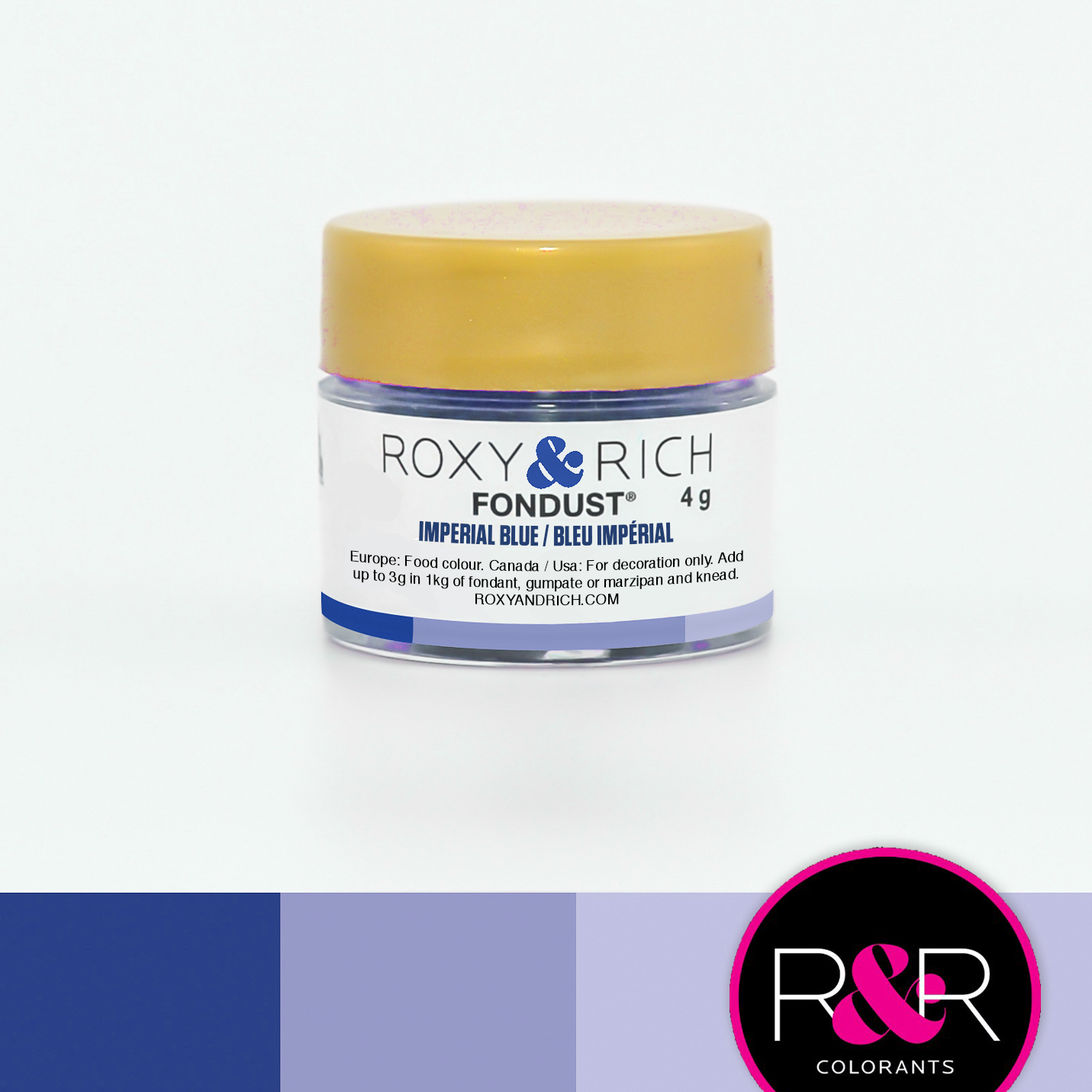 Fondust je vodou ředitelná prášková barva je speciálně navržena k barvení potravin s velmi nízkým obsahem vody. Série vodou ředitelných práškových barev Fondust, jejíž je tato barva součástí, se vyznačuje: – Matný povrch - Rozpustné ve vodě – Silná koncentrovaná barva – 36 krásných barev v sérii – 100% jedlé - Bezlepkový – Bez laktózy – Bez arašídů a ořechů - Vhodné pro vegetariány a vegany Barvu lze použít k obarvení fondánu, marcipánu, královské polevy, máslového krému, těsta na dorty, macaronů, sladkostí, airbrush atd. Barvu NELZE použít na čokoládu.