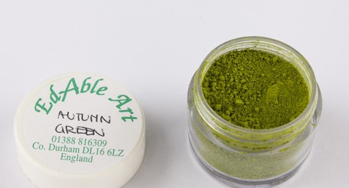 Prachová barva Autumn green od Edable Art pro snadné malování jedlých dekorací a motivů.