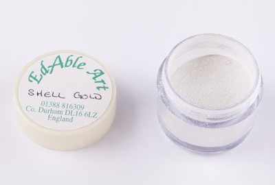 Prachová barva Shell gold od Edable Art pro snadné malování jedlých dekorací a motivů.