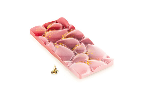 Všichni, kdo mají rádi čokoládové tyčinky a domácí čokoládu, si jistě objímí tuto formu. Velkou novinkou je tato polykarbonátová forma "Coccia-T" od Silikomartu, která vám umožní vyrobit 3 tyčinky s naprosto neuvěřitelným designem. Formu navrhovali profesionální cukráři jako je Andrey Dubovik. Sdílí a předává své znalosti a umění do celého světa, které jsou vyjádřeny prostřednictvím velkolepého designu a inovativních technik. Můžete je nabídnout na rodinné večeři, ale také je sníst během filmového večera doma. Polykarbonát je perfektní materiál pro práci s čokoládou, protože tyčinky se velmi snadno vylisují. S bílou, hořkou, mléčnou čokoládou a případně sušeným ovocem vám čokoládové tyčinky moc dlouho nevydrží.