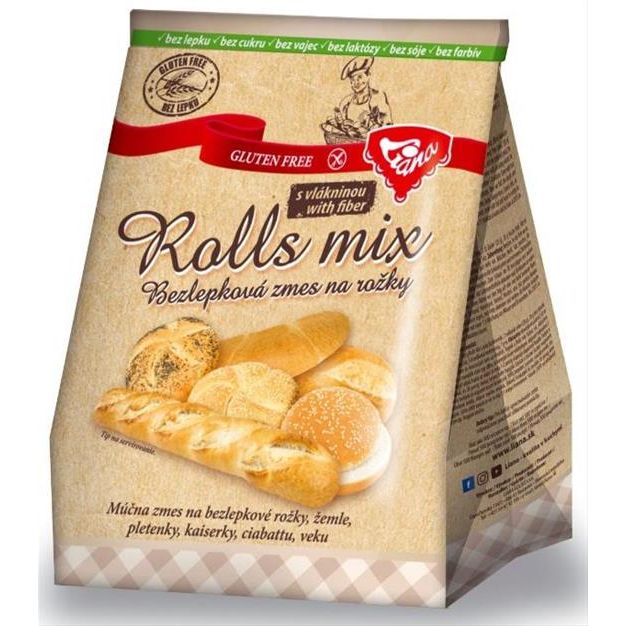 Dietetická potravina, speciální mouka, která je určena také pro zvláštní výživu pro osoby s nesnášenlivostí lepku. Bezlepková moučná směs s přísadami, jako je psyllium nebo inulin - na pečení bezlepkových rohlíků. Bez umělých přísad, bez kypřicích látek. Stačí přidat převařenou vodu do směsi, vymíchat těsto a péct. Doporučujeme zejména lidem s intolerancí lepku. K dispozici jsou i směsi na pečení tmavých rohlíků. Moučná bezlepková směs na rohlíky, housky, pletenky, kaiserky, ciabattu, veku. Neobsahuje lepek, cukr, vejce, laktózu, sóju a barviva.