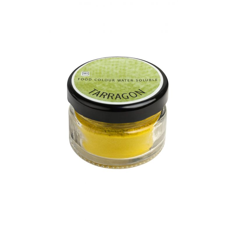Vodou rozpustné barvivo TARRAGON dodá dezertům svěží, přirozeně zelený odstín inspirovaný barvou estragonu – symbolem přírody, harmonie a elegance.