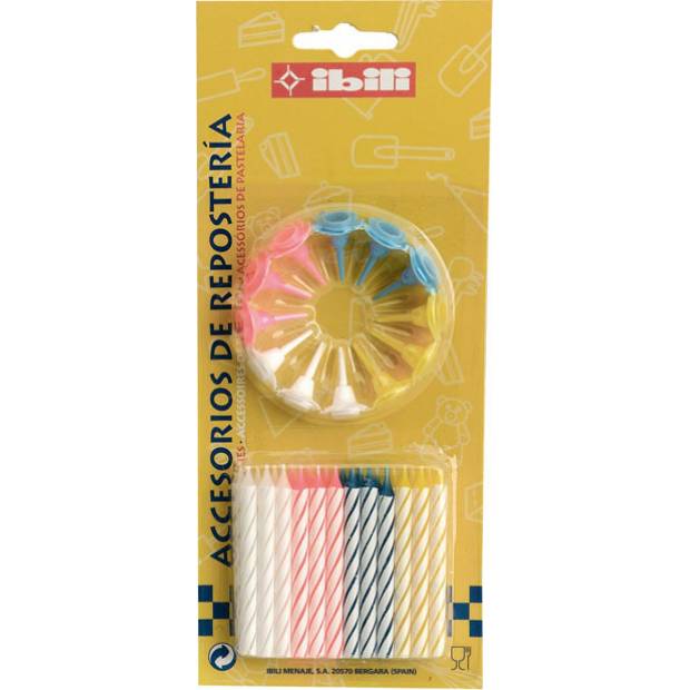 Různobarevné svíčky menší velikosti, které je možné upotřebit při jakékoliv narozeninové oslavě a události. Ke čtyřem barevným variantám přísluší i čtyři barvy držáků, do nichž se svíčky zasazují. Ideální pro vsazení do jakéhokoliv dortu nebo narozeninového zákusku.