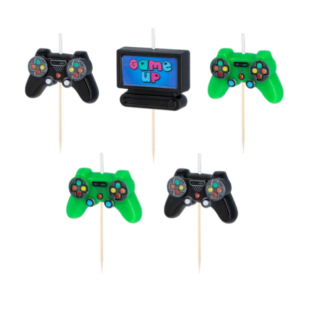 Sada narozeninových svíček 5 ks, herní - Party Pal