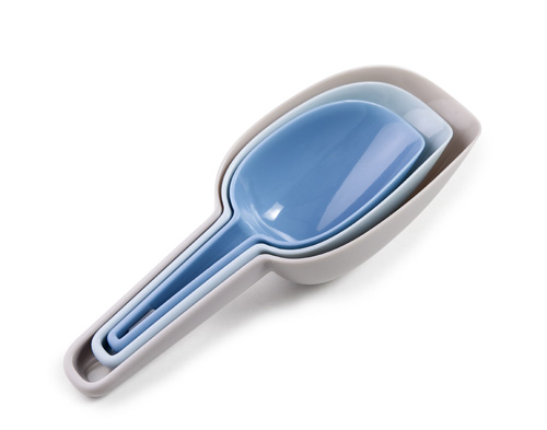 Sada tří odměrek na sypké potraviny a koření. Objem jednotlivých odměrek je 50, 100 a 150 ml. Díky velikosti lžíce se snadno vejdou do jakékoliv dózy. Tyto odměrky vám poslouží k odměření čaje, kávy, ale i mouky či cukru. Jsou plně omyvatelné, vyrobené z odolného plastu.