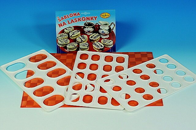 Plastová šablona na přípravu dvaceti laskonek o délce 30 cm.