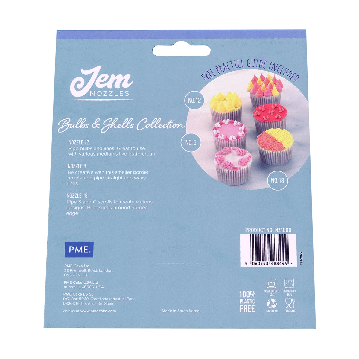Tato 3dílná sada trysek profesionální kvality vám pomůže snadno vytvořit nádherně rozmanité a velkolepé dekorace pro vaše dorty a zákusky. Sada obsahuje: Trysku č. 12 - Trubkové žárovky a vedení. Skvělé pro použití s různými médii, jako je máslový krém; Tryska č. 6 - Trysky rovné a zvlněné s touto malou okrajovou tryskou; Tryska č. 18 - Trysky S a C pro různá provedení nebo zdobení kolem okraje.Snadné použití: Skvělé pro profesionálního nebo domácího pekaře. Nejlepších výsledků dosáhnete při použití s PME zdobícími vaky nebo spojkami. Vyrobeno z vysoce kvalitní bezešvé nerezové oceli. Umyjte je teplou mýdlovou vodou.