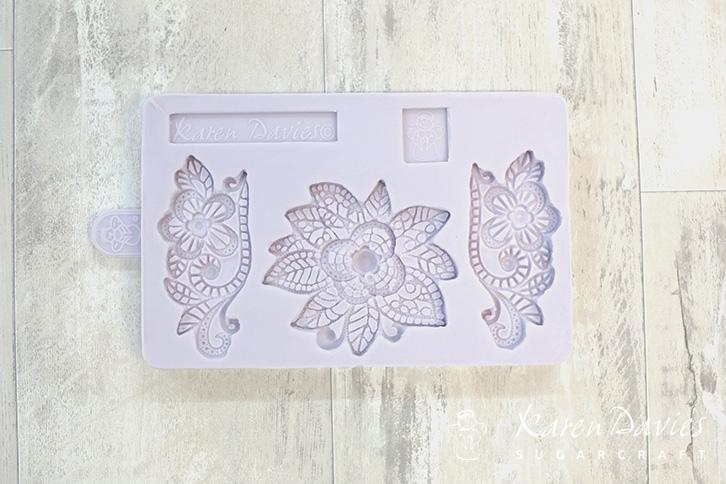 Silikonová forma pro vytvoření květinových ornamentů z marcipánu nebo fondánu na dortech.