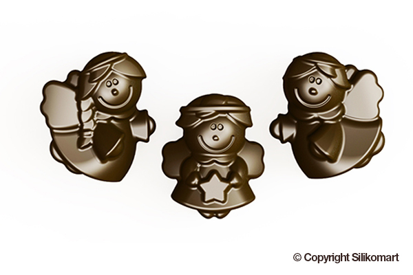 Kvalitní silikonová forma nabízí tři různé motivy andílků. Každý z nich je krásně ozdobený včetně drobných detailů. Rozpuštěnou čokoládou naplňte formu, přebytek setřete stěrkou a formou poklepejte o pracovní desku, aby v čokoládě nebyly bublinky. Čokoládky dejte ztuhnout do chladu (forma vydrží teploty do -60°C). Čokoláda se díky pružnosti, ohebnosti a nepřilnavosti silikonu vždy snadno vyloupne.