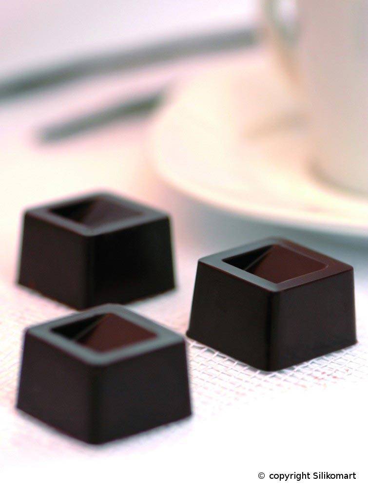 V této formě vytvoříte krásné bonbony ve tvaru kostky, které mají na vrchu malou prohlubeň. Rozměry jednoho bonbonu jsou 26x26x18cm. Po použití můžete formu umýt v myčce.