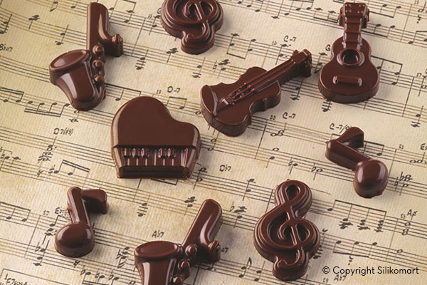 Domácí čokoládu můžete vytvářet do tvaru hudebních nástrojů s touto silikonovou formou.