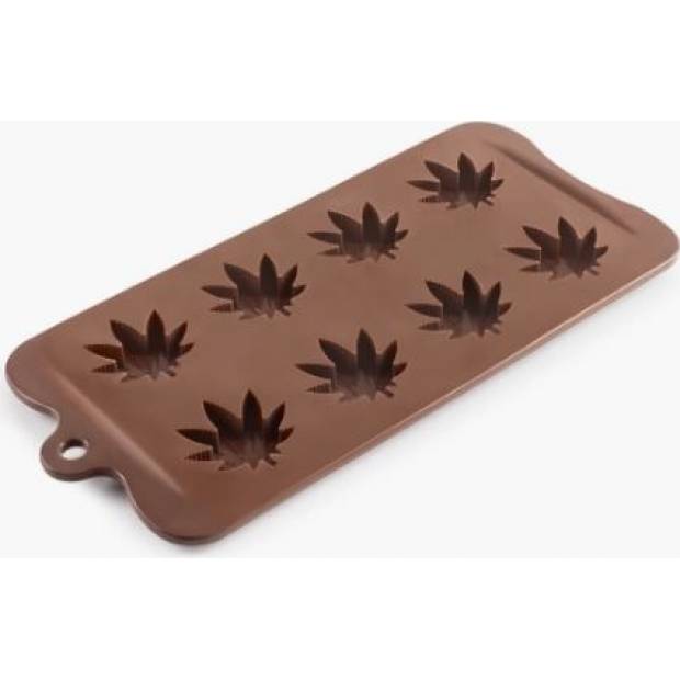 Čokoládová forma má podobu listů marihuany. 100% silikonová forma neobsahuje BPA. Vytvoříte v ní 8 ks jedinečných tvarovaných lístků. Lze ji použít na mrazení i do trouby.