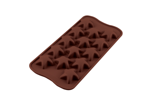 Nepřilnavá forma z kvalitního silikonu, ze které vyloupnete vždy dokonalé čokoládky. Ve formě připravíte čtrnáct bonbonů ve tvaru mořské hvězdy. Při přípravě si můžete vyhrát s barvením čokolády pomocí speciálních barev na čokoládu na bázi tuku, které najdete v našem e-shopu. Rozměry jedné hvězdice jsou 3,4 x 3,4 x 1,5 cm.