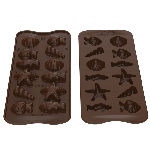Silikonová forma na čokoládu s motivem mořských plodů.