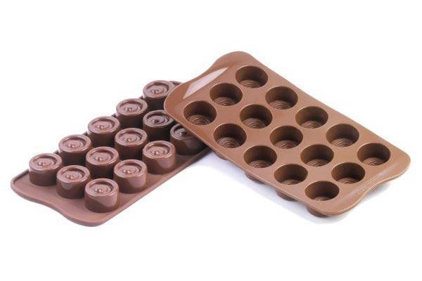 Forma VERTIGO má na vrchu každého bonbonu spirálu, díky které vytvoříte krásně zdobenou pochoutku. Rozpuštěnou čokoládou naplňte formu, přebytek setřete stěrkou a formou poklepejte o pracovní desku, aby v čokoládě nebyly bublinky. Čokoládky dejte ztuhnout do chladu (forma vydrží teploty do -60°C). Forma je velmi ohebná, z kvalitního silikonu, který nepraská. Formu můžete mýt v myčce.
