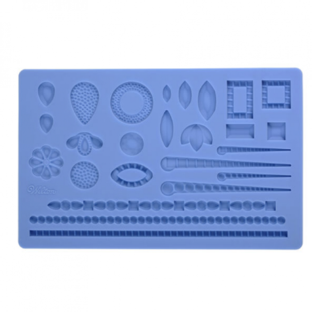 S flexibilní silikonovou formou na šperky hravě vytvoříte požadované dekorace. Tato forma Wilton obsahuje různé figurky, takže můžete ozdobit celý svůj dort. Protože je tato forma flexibilní, můžete hotové prvky snadno vyjmout. Vhodné na fondán, marcipán a gumovou pastu. Ideální pro zdobení koláčů, koláčů, sušenek a dalších. Velikost formy: přibližně 19,7 x 12,5 cm.