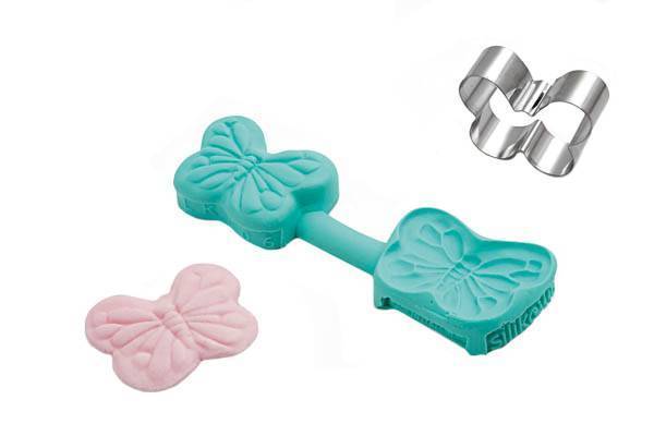 S touto formičkou můžete vytvářet krásně zdobené motýlky, kteří se budou vyjímat na vašich dortech. Součástí sady je vykrajovátko a formička na otiskování. Rozměry motýlka jsou 3,7x3cm.