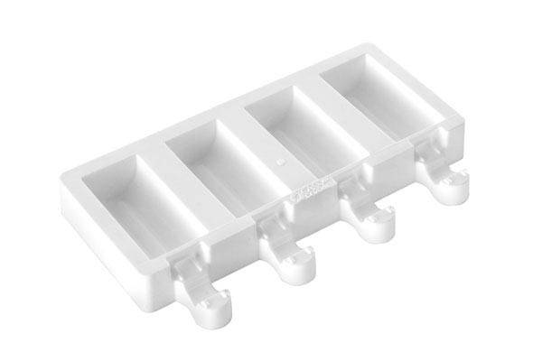 V pružné silikonové formě připravíte čtyři originální nanuky. Praktická forma má otvory na dřívka. Je velmi pružná, takže z ní nanuky snadno vyklopíte. Formu lze mýt v myčce. Rozměry jednoho nanuku jsou 70 x 33 x 22 mm. Celkový objem formy je 152 ml.