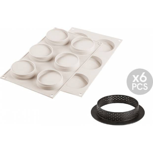 Vaše koláče a dorty mohou mít zcela moderní vzhled. Pomůže vám k tomu silikonová forma KIT MINI TARTE GLAM od společnosti Silikomart, která se skládá ze dvou prvků: 6 mikroperforovaných prstenců pro vytvoření křehkého koláčového základu a silikonové formy, která reprodukuje geometrickou, minimalistickou a moderní výzdobu. Speciální prstence o průměru 80 mm jsou vyrobeny z nového nepřilnavého plastového materiálu, který je ideální pro homogenní vaření v troubě. Formy na pečení jsou jakási stavebnice Mini Tarte Glam, která vám umožní vytvářet velmi moderní sladkosti s mimořádnou výzdobou na jejich povrchu. Rozměry formy: Ø 70 x 18 mm. Rozměry prstence: Ø 80 x 20 mm, objem 276 ml.