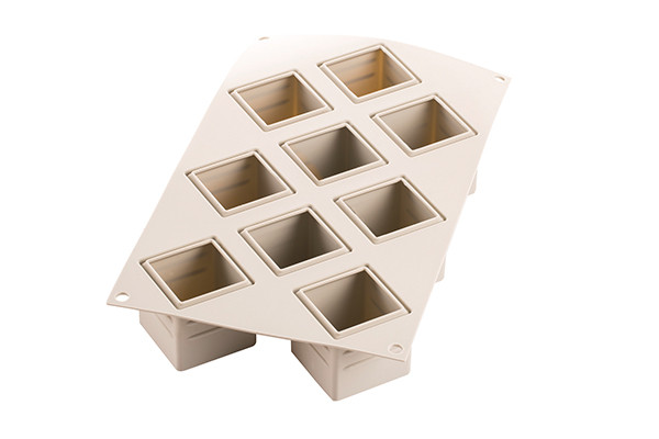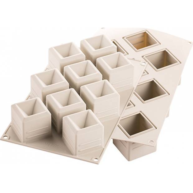 Silikonová forma Mosaico z řady Silikomart 3Design je inspirována uměním. Geometrické vzory se silným emocionálním dopadem na formu, kterou lze použít k prezentaci dortů i jednotlivých porcí. Mosaico označuje setkání klasického a současného stylu pro vždy odlišné a originální kreace. Každá dutina formy Mosaico je vybavena revolučním vnitřním okrajem, který dává základně vašich přípravků mírně zaoblený tvar. Tato silikonová forma zaručuje bezvadné výsledky pro různé pečené, ale i nepečené dezerty. Velikost: 50x50 x 50 mm. Objem 105 x 9 ml. V této formě vytvoříte devět kousků dezertu. Lze ji mýt v myčce nádobí. Je rovněž určena pro použití v lednici  i troubě či mikrovlnné troubě.