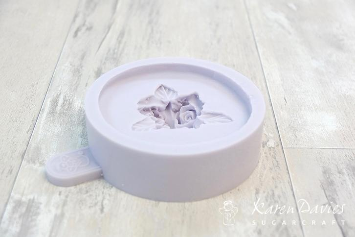 Silikonová formička na vytvarování tří růžiček.