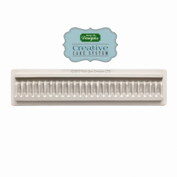Vytvarujte si jednoduše touto silikonovou ozdobný lem z volánků, který použijete jako ozdoby různých cukrářských dezertů a dortů. Tyto formičky vypadají krásně jako dekorace na svatební dort. Používají se s cukrovou nebo fondánovou pastou. S formami se velmi dobře pracuje. Rovnoměrně dovnitř vtlačte hmotu, válečkem ji rovnoměrně uhlaďte. Přebytečnou hmotu seškrábněte a poté pastu odtlačte od krajů, abyste ji z formy uvolnili. Hotovou výzdobu si uložte na suchý a čistý povrch.