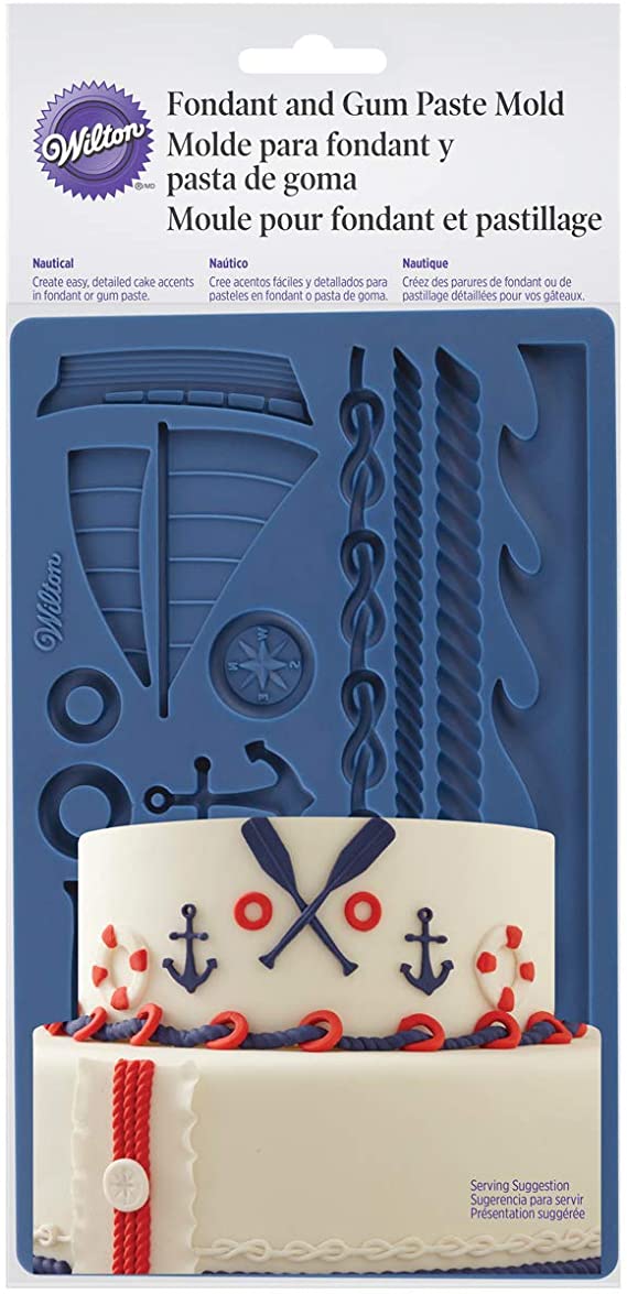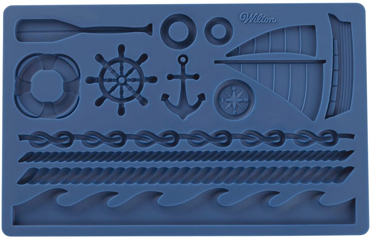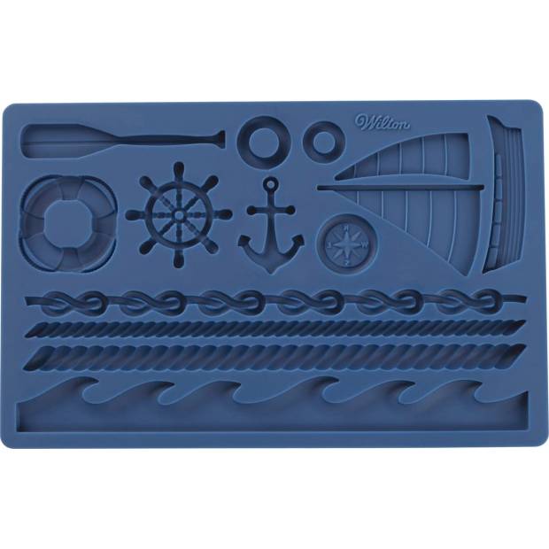 Dorty s námořnickou či lodní tématikou snadno ozdobíte touto šikovnou silikonovou formou od Wilton. Forma obsahuje různé figurky a bordury, které jsou jako stvořené pro zdobení dortu. Figurky jako je kotva, kolo a záchranná bóje, lze také použít k zdobení košíčků. Formy Wilton jsou flexibilní, takže se snadno uvolňují hotové figurky. Vhodná na fondán, marcipán a gumovou pastu. Velikost formy: cca. 19,7 x 12,5 cm.