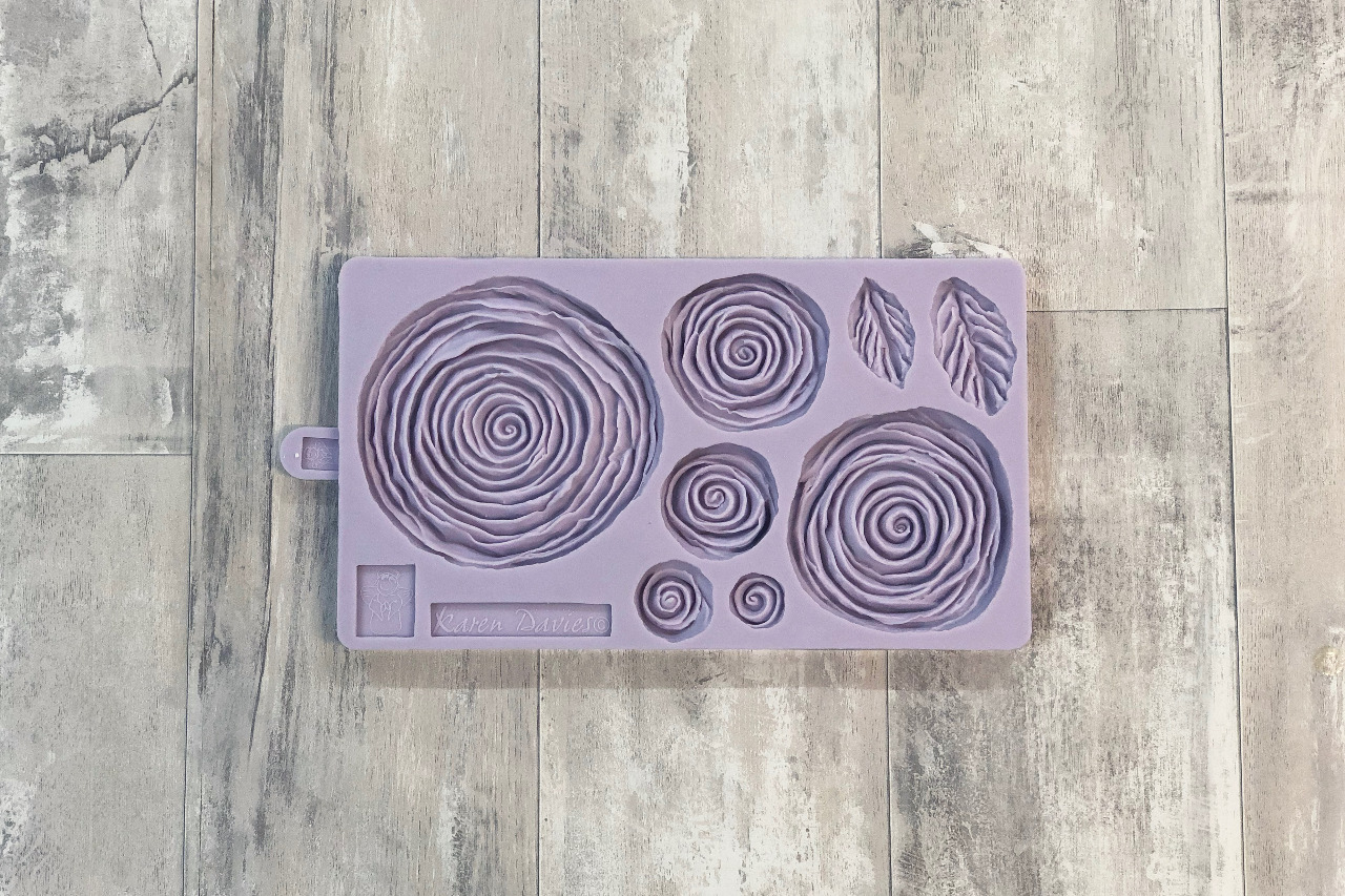 Silikonová formička na vytvarování tří růžiček.