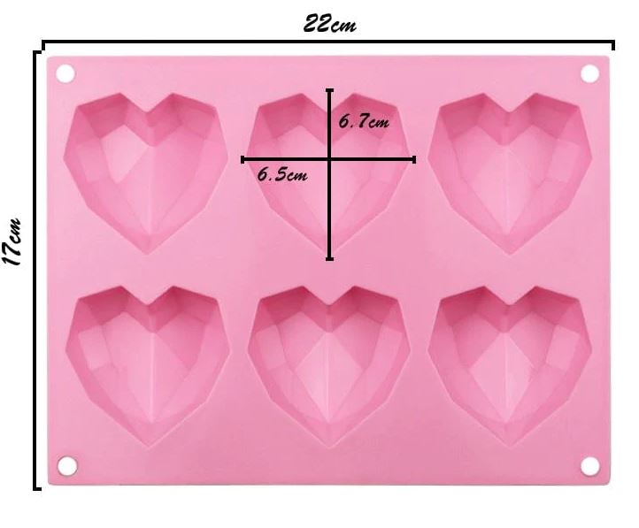 Diamantová srdce jsou pravděpodobně jedním z největších a nejroztomilejších trendů pečení posledních let! Jsou snadno hotové pomocí této silikonové formy. Výhoda silikonu oproti klasickým formám: ztuhlou čokoládu odstraníte, aniž byste ji rozlámali. A co víc, tato silikonová forma je vhodná i do mikrovlnné trouby, trouby, mrazničky a myčky nádobí! (-40 °C až 220 °C).