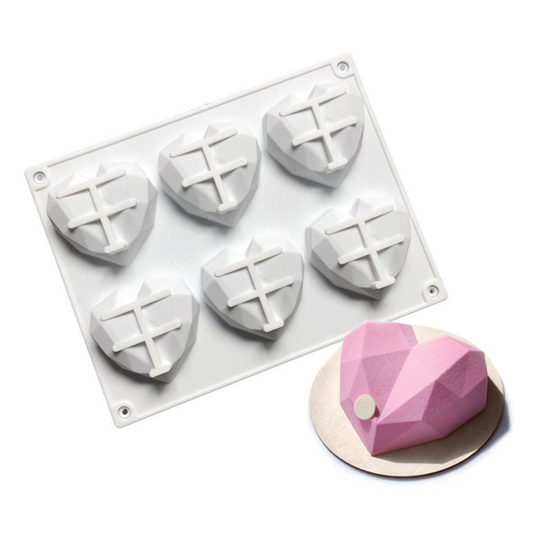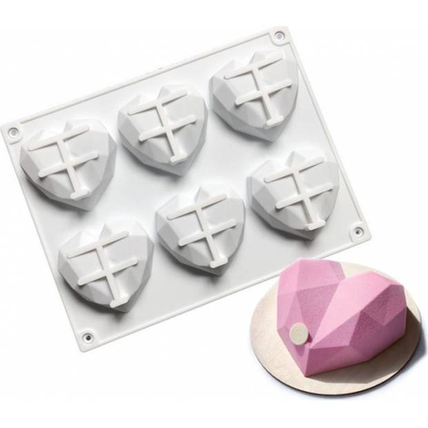 Praktická silikonová forma na hmoty jako fondán, marcipán či čokoládu je perfektní pomůcka, která vám umožní vytvořit úžasné ozdoby dortu v podobě geometrického srdce. Tato vysoce kvalitní silikonová forma je ideální pro vytváření dekorací s konkrétní tématikou. Díky této formě snadno vytvarujete různé druhy cukrové pasty, jako je marcipán nebo plastová poleva, a vytvoříte tak fantastické detaily. Forma je extrémně flexibilní a nepřilnavá, díky čemuž lze vylisované prvky snadno oddělit od formy bez poškození. Tato silikonová forma je odolná a snadno se čistí. Dá se používat znovu a znovu, takže je nezbytnou pomůckou každého domácího cukráře.