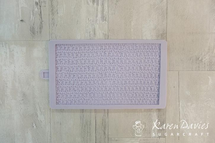 Silikonová forma pro vytvoření povrchu s motivem pleteného vzoru na dortech.