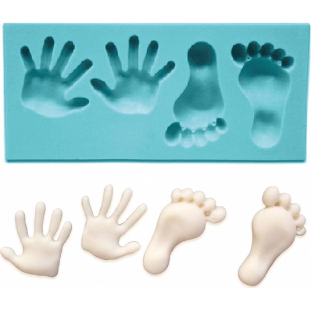 Silikonová formička na chodidla a dlaně. Po naplnění hmotou a vyjmutí dekorů z formy získáte dokonale vypracovaný produkt. Hotové výtvory můžete ozdobit sypáním, polevou či jedlým třpytivým gelem. Forma je vyrobena ze zdravotně nezávadného silikonu, který je určen pro kontakt s potravinami. Lze mýt v myčce nádobí.
