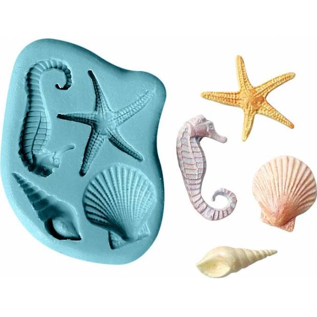 Praktická silikonová formička na hmoty jako fondán, marcipán či čokoládu je perfektní pomůcka, která vám umožní vytvořit úžasné ozdoby dortu ve tvaru mořského koníka, hvězdice nebo třeba mušle. Tato vysoce kvalitní silikonová forma je ideální pro vytváření dekorací s konkrétní tématikou. Díky této formě snadno vytvarujete různé druhy cukrové pasty, jako je marcipán nebo plastová poleva, a vytvoříte tak fantastické detaily. Forma je extrémně flexibilní a nepřilnavá, díky čemuž lze vylisované prvky snadno oddělit od formy bez poškození. Tato silikonová forma je odolná a snadno se čistí. Dá se používat znovu a znovu, takže je nezbytnou pomůckou každého domácího cukráře.