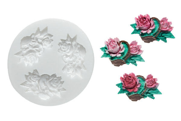 Forma na dekorace od Silikomart je bílá silikonová forma, pomocí které lze vyrábět dekorativní jedlé ozdoby. Vytvořená dekorace tvoří tři růže v košíku. Forma je vyrobená z platinového silikonu. Forma od Silikomart je vhodná do trouby, ledničky, mrazničky a myčky, snese teploty od -60 ° C do + 230 ° C. Je určená pro profesionální kuchyně a výrobny i pro běžné domácnosti.
