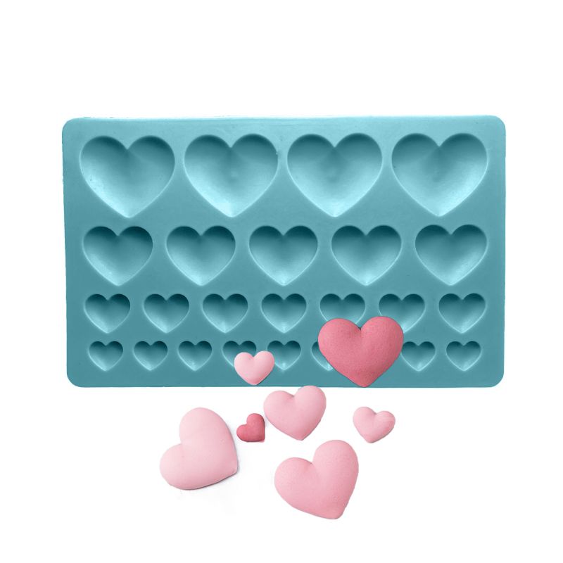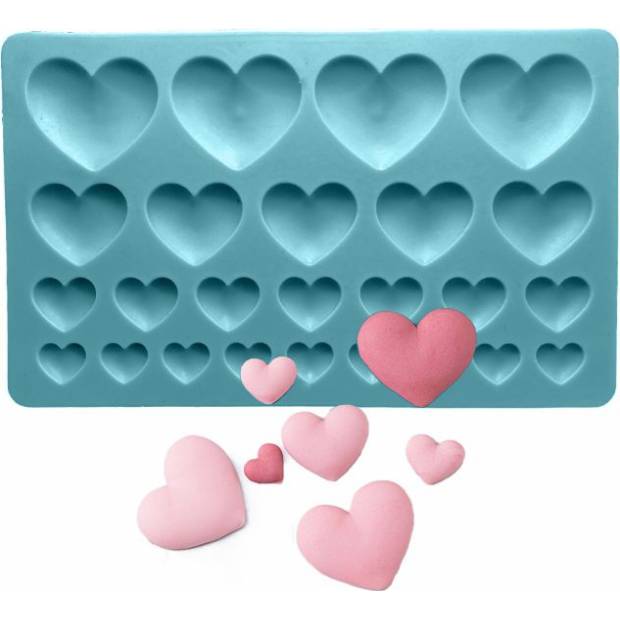 Praktická silikonová formička na hmoty jako fondán, marcipán či čokoládu je perfektní pomůcka, která vám umožní vytvořit úžasné ozdoby dortu v podobě romantických srdíček. Tato vysoce kvalitní silikonová forma je ideální pro vytváření dekorací s konkrétní tématikou. Díky této formě snadno vytvarujete různé druhy cukrové pasty, jako je marcipán nebo plastová poleva, a vytvoříte tak fantastické detaily. Forma je extrémně flexibilní a nepřilnavá, díky čemuž lze vylisované prvky snadno oddělit od formy bez poškození. Tato silikonová forma je odolná a snadno se čistí. Dá se používat znovu a znovu, takže je nezbytnou pomůckou každého domácího cukráře.