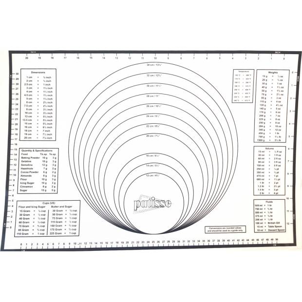 Silikonová pečící podložka Patisse je praktická pečicí podložka, která je ideální pro vyválení fondánového, marcipánového nebo sušenkového těsta. Podložka na pečení ukazuje rozměry, takže je snazší vyválet požadovanou velikost.