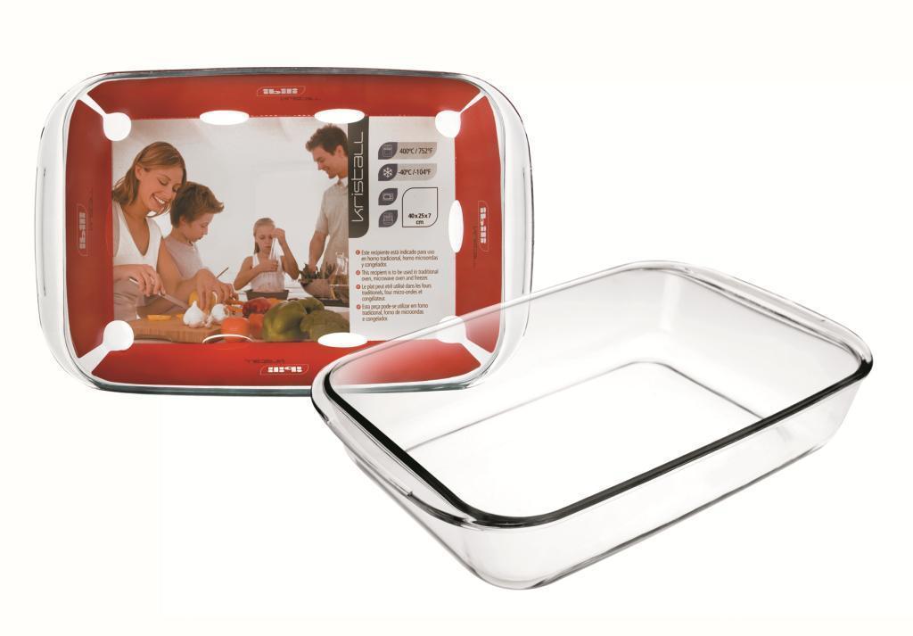Obdélníkový pekáč z odolného skla vhodný do každého typu pečící trouby.
