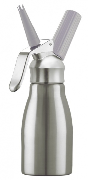 Šlehačková láhev Symphonie je vyrobená z nerezové oceli. Je skvělým pomocníkem pro jednoduchou a především rychlou přípravu chutné šlehačky. Hotovou sladkou či neochucenou šlehačku můžete skladovat až po dobu 10 dnů. Vybrat si můžete objem 0,25 l nebo 0,5 l. K dispozici jsou dvě trysky pro zdobení dezertů, moučníků, palačinek, kávy a dalších. Tělo láhve můžete umýt v myčce nádobí, hlavici pouze ručně. Používá se v kombinaci s jednorázovými a bezzávitovými bombičkami. Záruka na láhev na šlehačku je pět let.