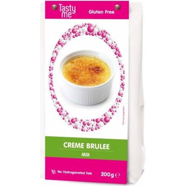 Směs na přípravu oblíbeného dezertu. Jednoduchá příprava: V rendlíku smícháme 200 g mixu, 340 g mléka a 800 g šlehačky a za stálého zahřívání za stálého míchání mícháme až téměř k varu. Směs nalijte do mělkých misek odolných vůči troubě a nechte je v lednici ztuhnout alespoň 1 hodinu. Dezert posypte moučkovým cukrem a vypálíme na něm pěknou vrstvu hořákem na cr?me br?lée a ihned podáváme. Nemáte hořák? Ramekiny vložte krátce pod gril do trouby. Skladujte při pokojové teplotě na suchém místě, nevystavujte teplotním změnám a zdrojům tepla. Směsi jsou vyráběny v bezlepkovém zařízení a Tasty Me proto může zaručit, že směsi obsahují méně než 20 mg/20 ppm lepku na kg. Většina lidí s celiakií nebo citlivostí na lepek nezaznamenává žádné stížnosti z tohoto nízkého množství.