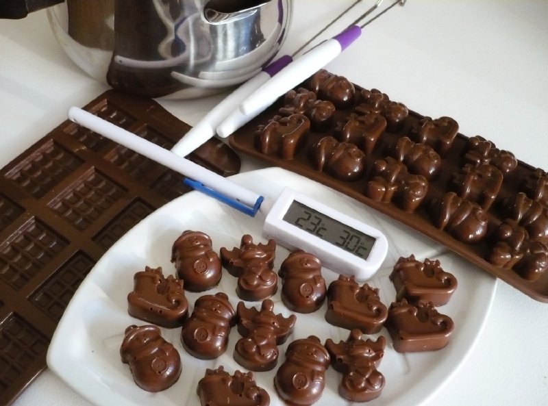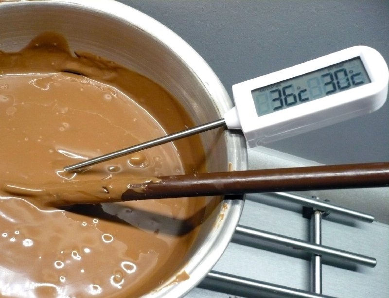 Speciální digitální teploměr k temperování čokolády.