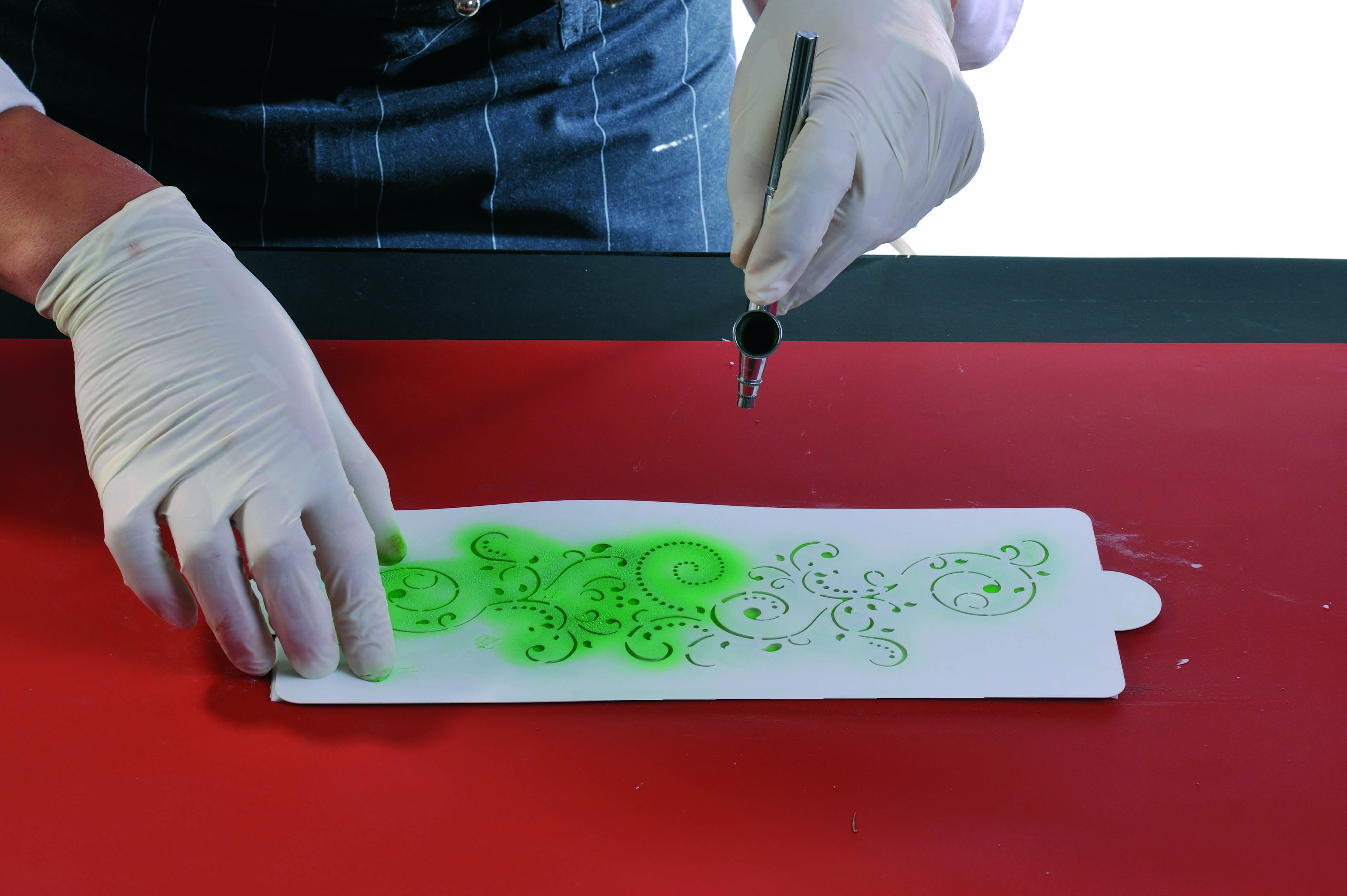 Pokud chcete vytvořit profesionální dort, ale nejste si jisti, že zvládnete vytvořit složitější tvary, je nejlepší možnost využít profesionální šablonu na zdobení dortů. Šablonu stačí přidržet na povrchu dortu, nebo cukroví a jemně přestříkat za pomocí Airbrushe. Poté co šablonu sundáte, zůstane na Vašem dortu profesionálně vypadající kresba. Stencil - šablona má všestrané využití a za její pomoci, docílíte těch nejprofesionálnějších výsledků.