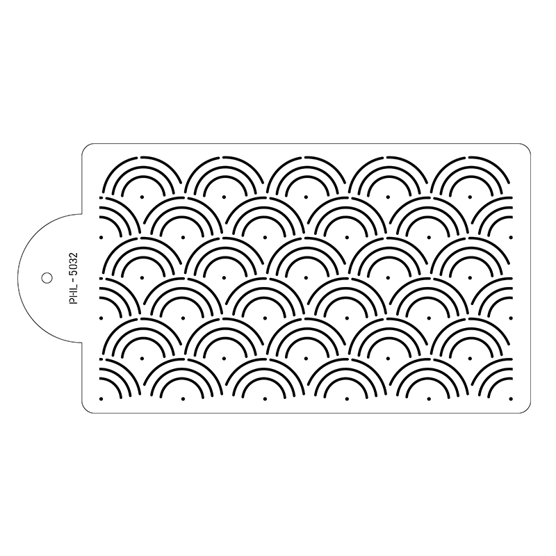 Profesionální stencil šablona na zdobení dortů Scales vám usnadní práci. Vyrobeno z vysoce kvalitního materiálu, proto je bezpečné, šetrné k životnímu prostředí a ideální pro dlouhodobé používání. Stencil šablony jsouo také vhodné na zmrzlinové dezerty, horký fondán, máslový krém, čokoládový prášek nebo jakoukoli potahovací hmotu. Dodejte svému výtvoru trochu textury a hloubky pomocí této šablony na dorty.