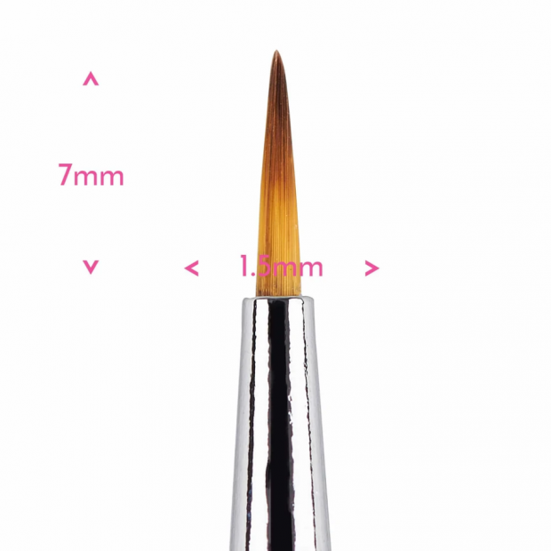Špičatý štětec č.0/2 má úzkou špičku s dlouhými těsně uspořádanými štětinami. Je ideální pro jemnější detaily včetně tahů, nápisů, obrysů, jemných souvislých tahů a retuše. Má měkké syntetické štětiny.