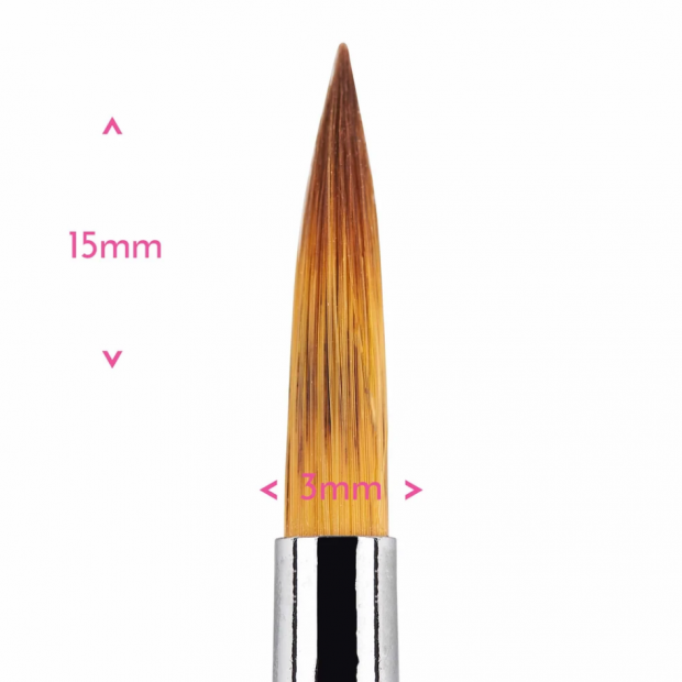 Špičatý štětec č.2 má úzkou špičku s dlouhými těsně uspořádanými štětinami. Je ideální pro jemnější detaily včetně tahů, nápisů, obrysů, jemných souvislých tahů a retuše. Má měkké syntetické štětiny.