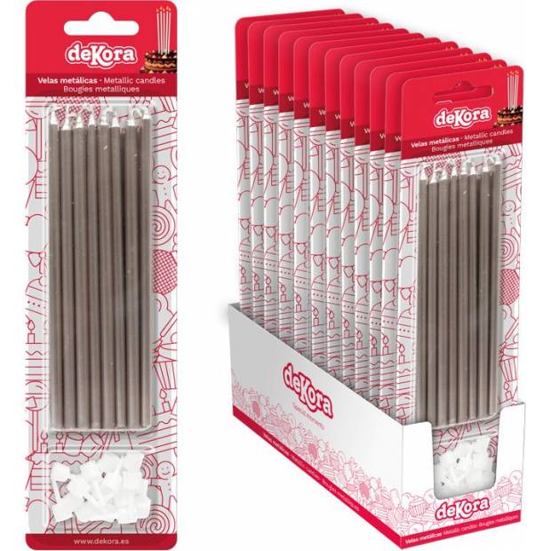 Klasické dortové svíčky ve stříbrné barvě. V balení 16ks. Výška 13 cm.